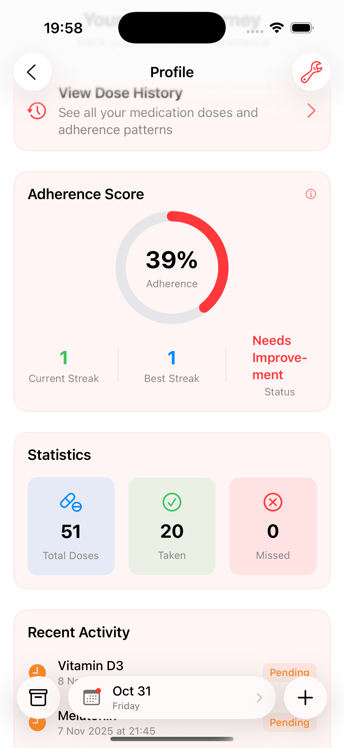 See your adherence improve over time with streak tracking, adherence scores, and milestone celebrations. Build consistency and celebrate your progress as you stay on track.