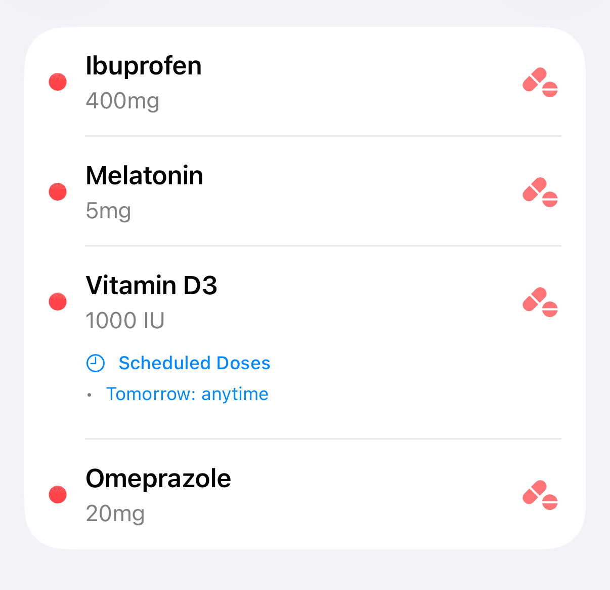 Set up medication schedules that work for you. Whether you take medications at fixed times, as needed, or on a flexible schedule, PillHub adapts to your routine.